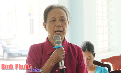Cử tri Lê Thị Rơi, khu phố 1, phường Tân Đồng kiến nghi tại buổi tiếp xúc