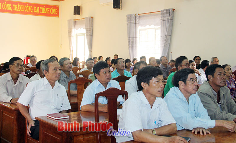 Người dân xã Phú Riềng (Phú Riềng) nghe tuyên truyền về Luật Bảo hiểm y tế do UBMTTQVN tỉnh tổ chức