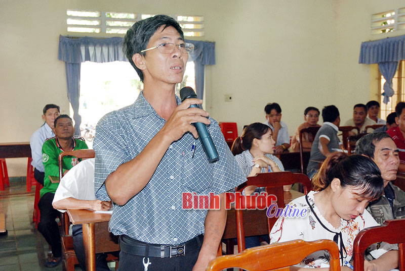 Tại buổi tiếp xúc, cử tri xã Đồng Tâm kiến nghị 14 ý kiến, vấn đề như: chất lượng phân bón, thuốc bảo vệ thực vật; khó khi xóa điểm lẻ mầm non ở ấp; chế độ, chính sách cho cán bộ thôn, ấp, cán bộ không chuyên trách. Nhiều cử tri bức xúc trước việc giải quyết thủ tục cấp giấy chứng nhận quyền sử dụng đất chậm; tình trạng tranh chấp đất đai. Một số hộ có đất trong dự án đường Đồng Phú - Bình Dương yêu cầu giải quyết dứt điểm việc đền bù giải tỏa và các chính sách liên quan... Cử tri xã Đồng Tâm cũng kiến nghị việc sớm quy hoạch đất để xây dựng nghĩa trang nhân dân.