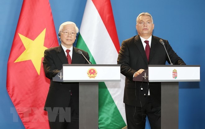 Tổng Bí thư Nguyễn Phú Trọng bày tỏ sự cảm ơn chân thành đối với sự tiếp đón trọng thị, nồng nhiệt mà phía Hungary đã dành cho Tổng Bí thư và Đoàn đại biểu cấp cao Việt Nam; trân trọng mời Thủ tướng Viktor Orbán thăm lại Việt Nam. Thủ tướng Orbán Viktor cảm ơn và vui vẻ nhận lời mời.