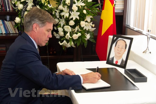 Cũng trong ngày 26-9, Đại sứ quán Việt Nam tại Argentina đã trang trọng tổ chức lễ viếng và mở sổ tang tưởng niệm Chủ tịch nước Trần Đại Quang.
