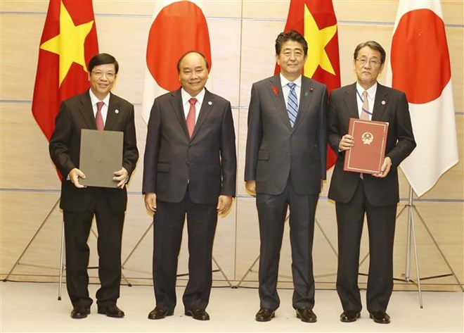 Thủ tướng Shinzo Abe cảm ơn và đánh giá cao Thủ tướng Nguyễn Xuân Phúc và đoàn đại biểu cấp cao Việt Nam thăm Nhật Bản và dự Hội nghị Cấp cao Mekong-Nhật Bản; khẳng định Chính phủ Nhật Bản coi trọng sự phát triển bền vững của Việt Nam và sẽ nỗ lực vì sự phát triển của Việt Nam thông qua thúc đẩy các dự án ODA và đầu tư của doanh nghiệp Nhật Bản vào Việt Nam; nhất trí cùng thúc đẩy trao đổi hỗ trợ Việt Nam xây dựng Chính phủ điện tử, cải cách hành chính, nâng cao năng suất lao động, góp phần thúc đẩy xây dựng môi trường đầu tư thuận lợi nhằm thu hút hơn nữa đầu tư trực tiếp của doanh nghiệp Nhật Bản vào Việt Nam; sắp tới sẽ hỗ trợ nâng cao năng lực nhân lực y tế trong khuôn khổ Sáng kiến Sức khoẻ châu Á.