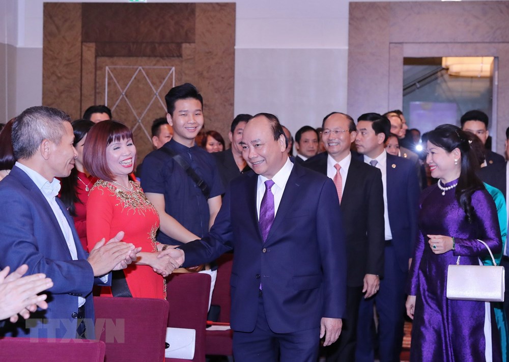 Thủ tướng Nguyễn Xuân Phúc nói chuyện với cán bộ, nhân viên Đại sứ quán Việt Nam và đại diện cộng đồng người Việt tại Áo và một số nước châu Âu.