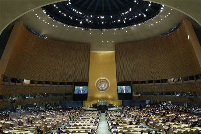 Một phiên họp của Đại Hội đồng Liên hợp quốc ở New York, Mỹ. (Ảnh: THX/TTXVN)