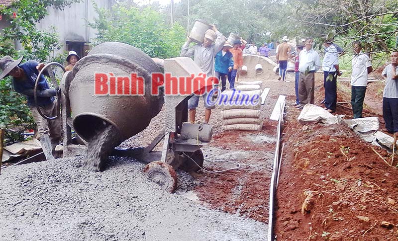 Ban giám sát đầu tư của cộng đồng xã Đức Liễu (Bù Đăng) cùng nhân dân giám sát thi công đường giao thông nông thôn tại địa bàn