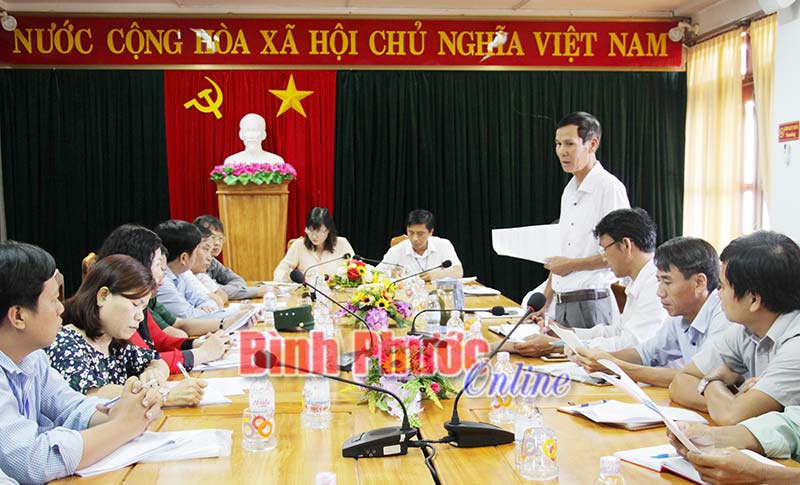 Lãnh đạo Phòng Tài nguyên - Môi trường huyện Lộc Ninh báo cáo việc thực hiện pháp luật về môi trường ở địa phương với đoàn giám sát MTTQ tỉnh