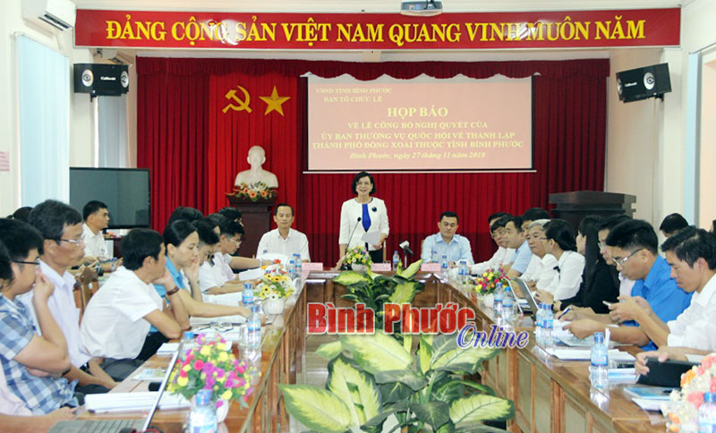 Tại buổi họp báo, Giám đốc Sở Thông tin và Truyền thông Nguyễn Minh Bình cho biết: Chương trình lễ công bố Nghị quyết của Ủy ban Thường vụ Quốc hội về việc thành lập thị trấn Tân Khai, phường Tiến Thành và thành phố Đồng Xoài được bắt đầu từ 19 giờ 30 phút đến 21 giờ 30 phút ngày 30-11-2018 tại hội trường tỉnh. Tỉnh ủy, HĐND, UBND, UBMTTQVN tỉnh tổ chức lễ công bố. Buổi lễ cũng công bố Nghị quyết của Ban Thường vụ Tỉnh ủy Bình Phước về đổi tên Đảng bộ thị xã Đồng Xoài thành Đảng bộ thành phố Đồng Xoài. Dự kiến có 500 đại biểu, khách mời đại diện lãnh đạo Trung ương, các tỉnh, thành bạn và đông đảo cán bộ, nhân dân trong tỉnh dự lễ công bố.