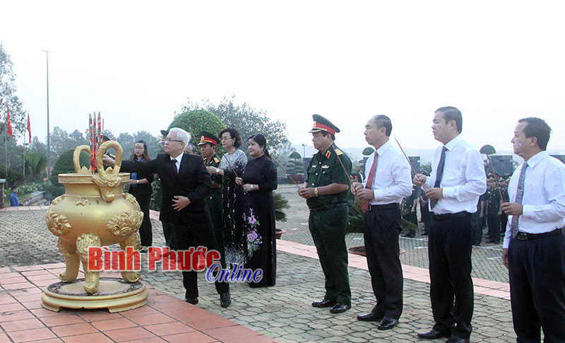 Tham dự buổi lễ có các đồng chí: Nguyễn Văn Lợi, Ủy viên Trung ương Đảng, Bí thư Tỉnh ủy, Trưởng đoàn Đại biểu Quốc hội tỉnh; Trần Tuệ Hiền, Phó bí thư Thường trực Tỉnh ủy, Chủ tịch HĐND tỉnh; Nguyễn Văn Trăm, Phó bí thư Tỉnh ủy, Chủ tịch UBND tỉnh; các đồng chí trong Ban Thường vụ, Ban Chấp hành Đảng bộ tỉnh; đại diện lãnh đạo các sở, ban, ngành, đoàn thể, lực lượng vũ trang tỉnh cùng cán bộ, nhân dân thị xã Đồng Xoài và huyện Đồng Phú. Các đoàn đại biểu đã thắp hương và đặt vòng hoa tưởng niệm mang dòng chữ: “Đời đời ghi nhớ công ơn các anh hùng liệt sĩ”.