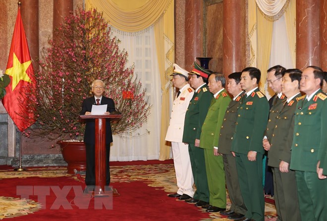 Tổng Bí thư, Chủ tịch nước Nguyễn Phú Trọng nhấn mạnh sự nghiệp xây dựng và bảo vệ Tổ quốc Việt Nam xã hội chủ nghĩa trong giai đoạn cách mạng hiện nay đang đứng trước tiền đồ hết sức vẻ vang, song cũng phải đối mặt với không ít khó khăn, thách thức. Củng cố quốc phòng, giữ vững an ninh quốc gia, ổn định chính trị, trật tự, an toàn xã hội là nhiệm vụ trọng yếu, thường xuyên của Đảng, Nhà nước, của cả hệ thống chính trị và toàn dân, trong đó Quân đội nhân dân và Công an nhân dân là lực lượng nòng cốt, đòi hỏi lực lượng vũ trang phải luôn luôn tuyệt đối trung thành với Đảng, Nhà nước và nhân dân; thực sự đoàn kết, thống nhất, luôn nêu cao tinh thần cảnh giác cách mạng, không ngừng nâng cao chất lượng tổng hợp và sức mạnh chiến đấu, xứng đáng là lực lượng chính trị, lực lượng chiến đấu trung thành, tin cậy của Đảng, Nhà nước và nhân dân, đặt dưới sự lãnh đạo trực tiếp tuyệt đối về mọi mặt của Đảng.