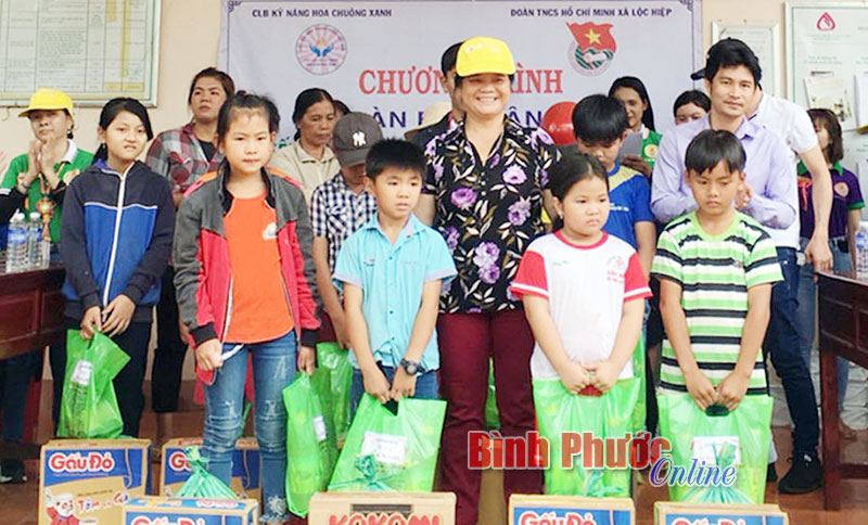 Bà Nông Thị Thuận trong chuyến hoạt động từ thiện tại xã Lộc Hiệp (Lộc Ninh)