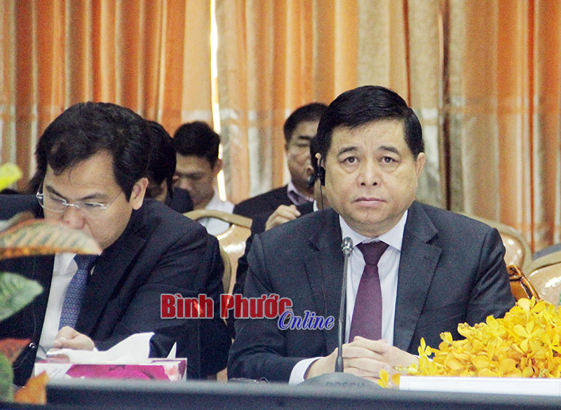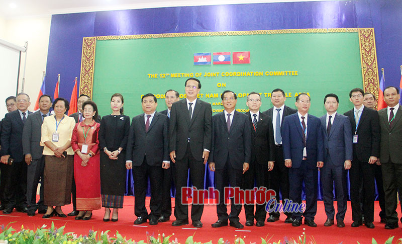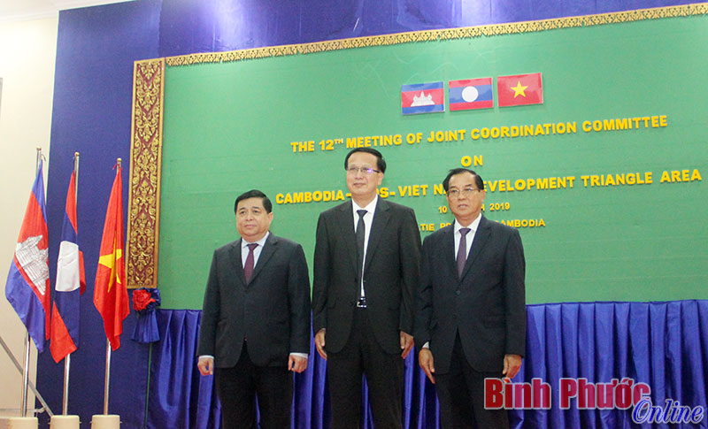 Trước khi bắt đầu hội nghị, bộ trưởng 3 nước đã chụp hình kỷ niệm thắt chặt tình quan hệ hữu nghị. Từ trái qua phải: Bộ trưởng Bộ Kế hoạch - Đầu tư Việt Nam Nguyễn Chí Dũng, Bộ trưởng cao cấp Bộ Thương mại Campuchia Pan Sorasak, Bộ trưởng Bộ Kế hoạch - Đầu tư Lào Suphăn Keomixay