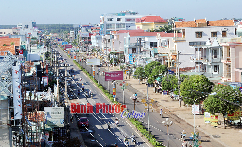 Một góc đường Phú Riềng Đỏ, thành phố Đồng Xoài ngày nay - Ảnh: Sỹ Hòa