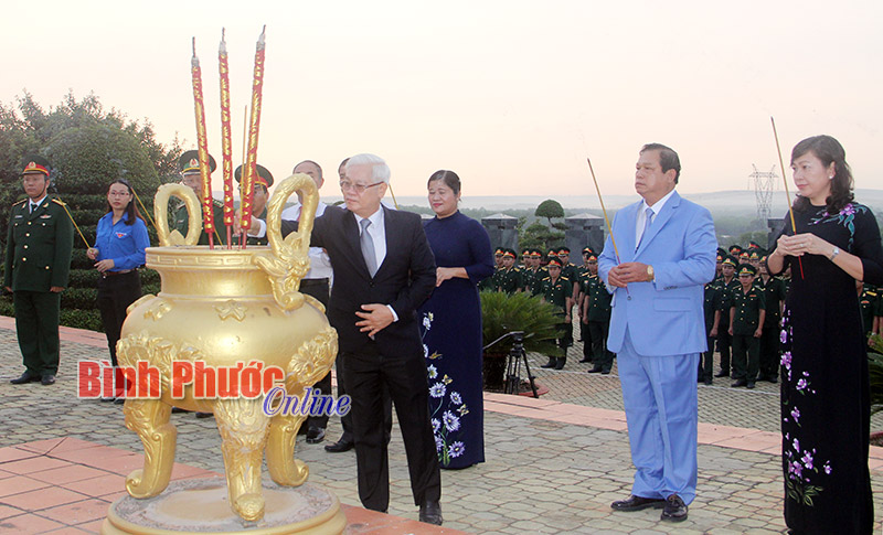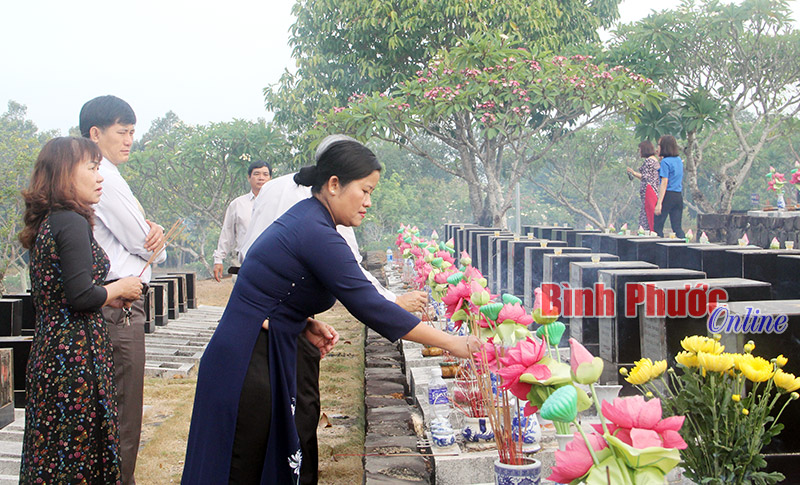 6 giờ sáng, lãnh đạo tỉnh, lực lượng vũ trang cùng đông đảo cán bộ, đoàn thanh niên, nhân dân huyện Đồng Phú và thành phố Đồng Xoài có mặt tại Nghĩa trang liệt sĩ tỉnh để dự lễ viếng