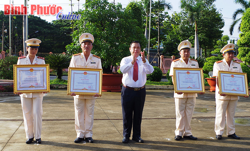 Chủ tịch UBND tỉnh Nguyễn Văn Trăm dự lễ chào cờ tháng 10-2014 và trao tặng bằng khen của Thủ tướng Chính phủ cho 4 tập thể thuộc Công an tỉnh vì có thành tích xuất sắc trong đấu tranh phòng chống tội phạm