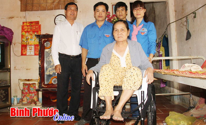 Cán bộ Đoàn khối cơ quan dân chính đảng trao xe lăn cho bà Nguyễn Thị Liên