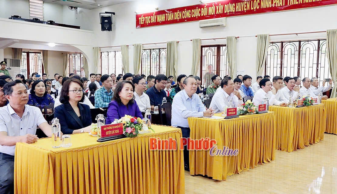 Tại hội trường huyện Lộc Ninh, Phó Thủ tướng Thường trực Trương Hòa Bình đã ôn lại những dấu mốc lịch sử quan trọng của dân tộc, đặc biệt là những sự kiện lịch sử gắn với địa danh Lộc Ninh anh hùng; chia sẻ với lãnh đạo và nhân dân Bình Phước về công cuộc xây dựng và phát triển kinh tế hiện nay của tỉnh.