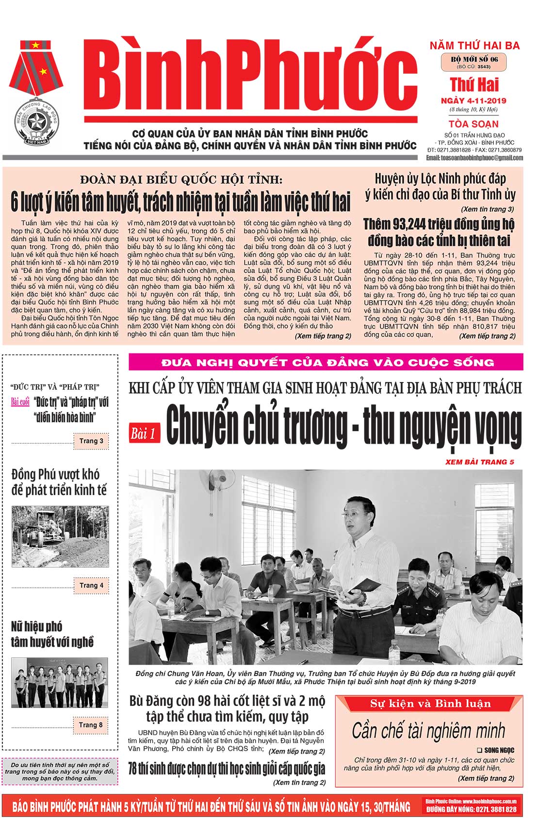 Ngoài các bài viết trên, ấn phẩm của Đài PT-TH và Báo Bình Phước số 6, (bộ mới), phát hành sáng thứ 2, ngày 4-11-2019 còn có nhiều tin, bài thời sự trong tỉnh, trong nước và quốc tế.