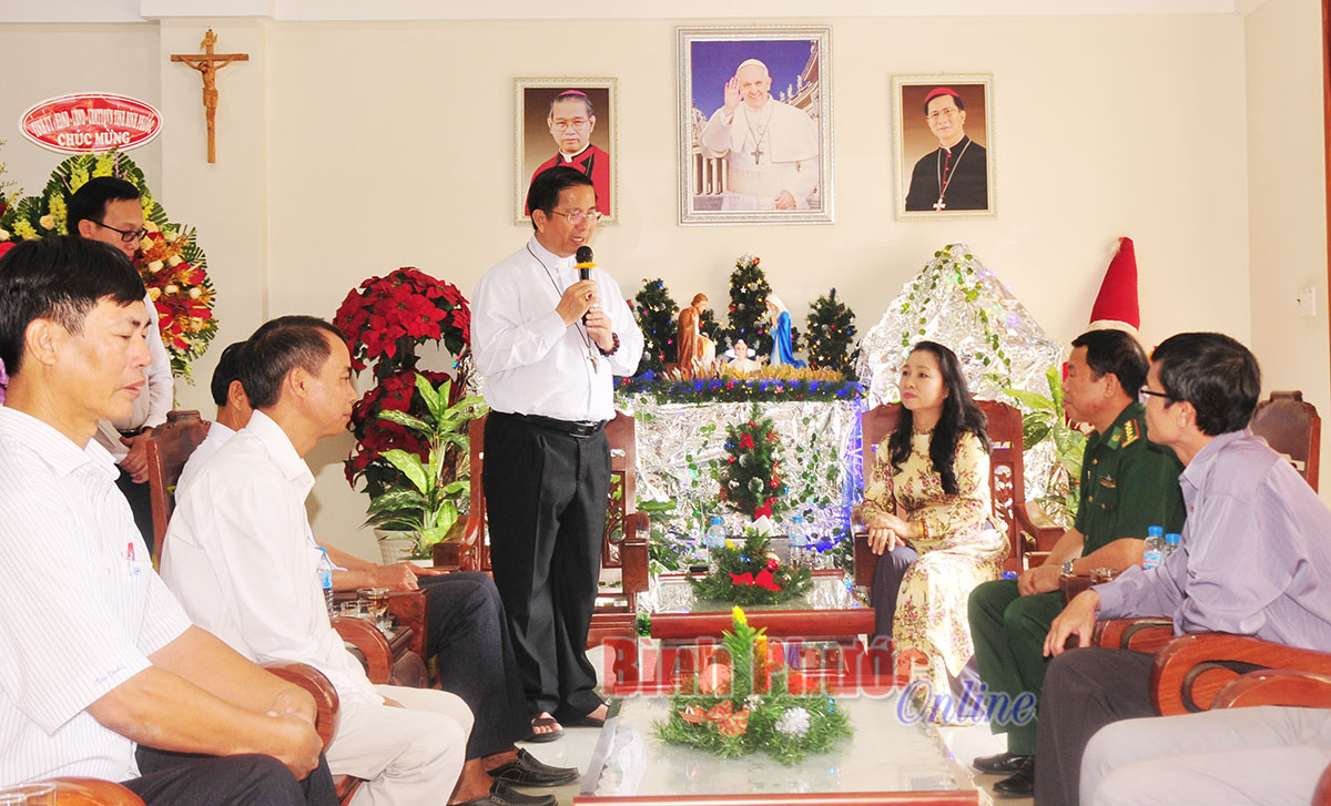 Đức cha Nguyễn Tấn Tước gửi lời cảm ơn Tỉnh ủy, HĐND, UBND, UBMTTQVN tỉnh Bình Phước đã quan tâm đến giáo dân công giáo nhân dịp giáng sinh, đồng thời vui mừng chia sẻ với tỉnh Bình Phước về những thành tựu kinh tế - xã hội, an ninh - quốc phòng, anh sinh xã hội trong năm 2019.