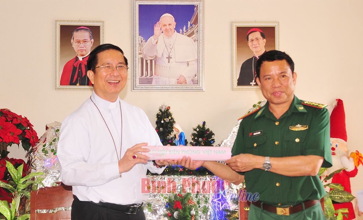 Bộ chỉ huy Bộ đội biên phòng tỉnh Bình Phước tặng quà Tòa giám mục Phú Cường nhân dịp giáng sinh
