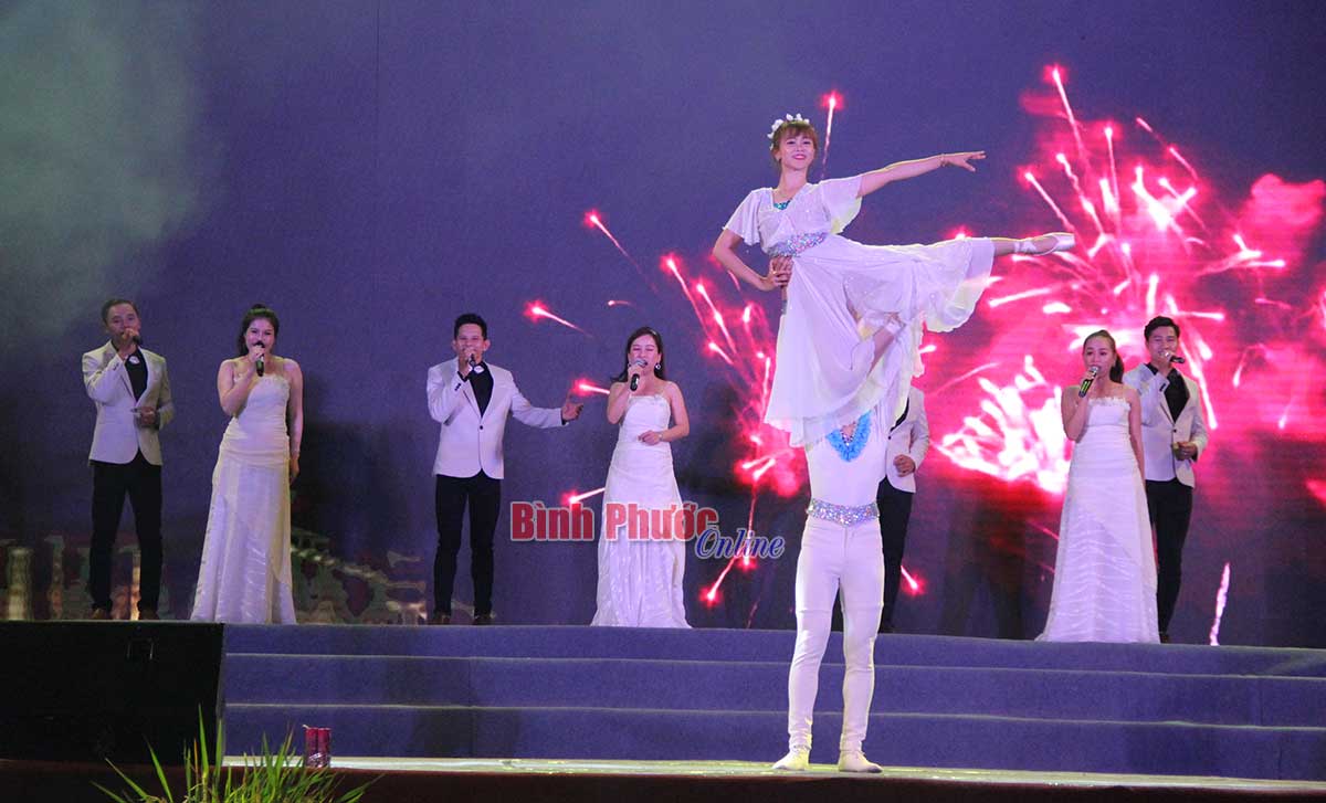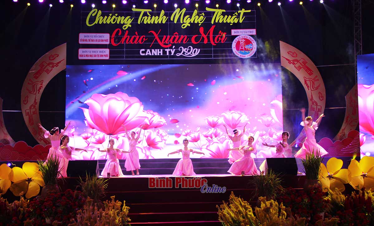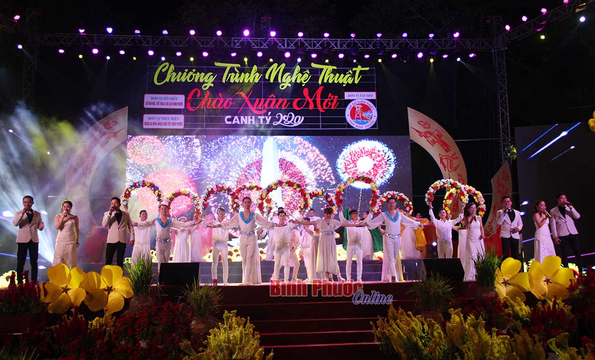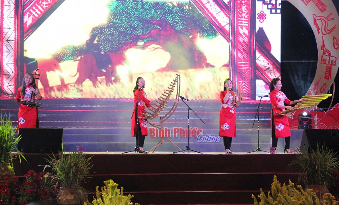 Chương trình nghệ thuật gồm 18 tiết mục ca, múa nhạc đặc sắc ca ngợi mùa xuân, tình yêu quê hương, đất nước, con người Bình Phước được dàn dựng công phu cả về nội dung và hình thức thể hiện như: Xuân về trên rừng núi, Tiếng trống Paranưng, Bài ca mùa xuân, Ánh mắt S'tiêng, Khúc nhạc ngày xuân, Khúc giao mùa, Sắc xuân Việt… Đặc biệt, người dân và du khách còn được thưởng thức tiết mục múa "Vasle các loài hoa" và "Tango Ê đê" đầy ấn tượng.