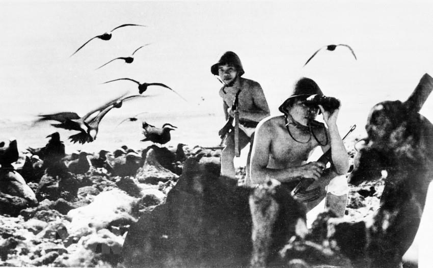 Bộ đội Đặc công hải quân Đoàn 126 trên đảo Trường Sa được giải phóng, ngày 29-4-1975. (Ảnh: TTXVN phát)
