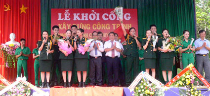 Các đồng chí lãnh đạo tỉnh, huyện và đơn vị thi công phát động lễ khởi công