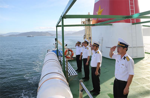 Đoàn Việt Nam trên tàu 561 chào cảng trước khi rời Padang
