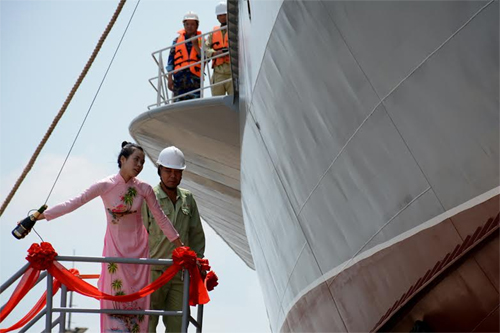 Nghi thức đập sâm-panh hạ thủy tàu.