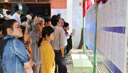 Cử tri xã Tân Khai (Hớn Quản) tìm hiểu về các ứng cử viên trước khi bỏ phiếu