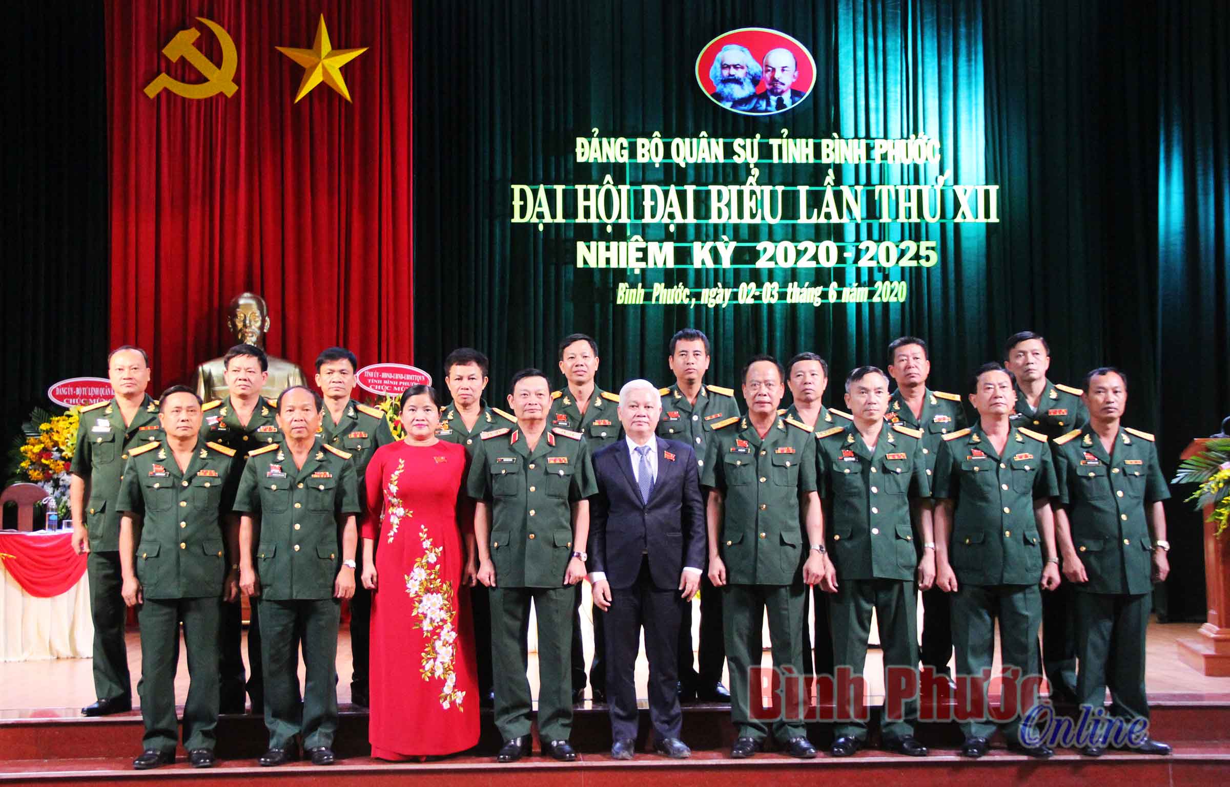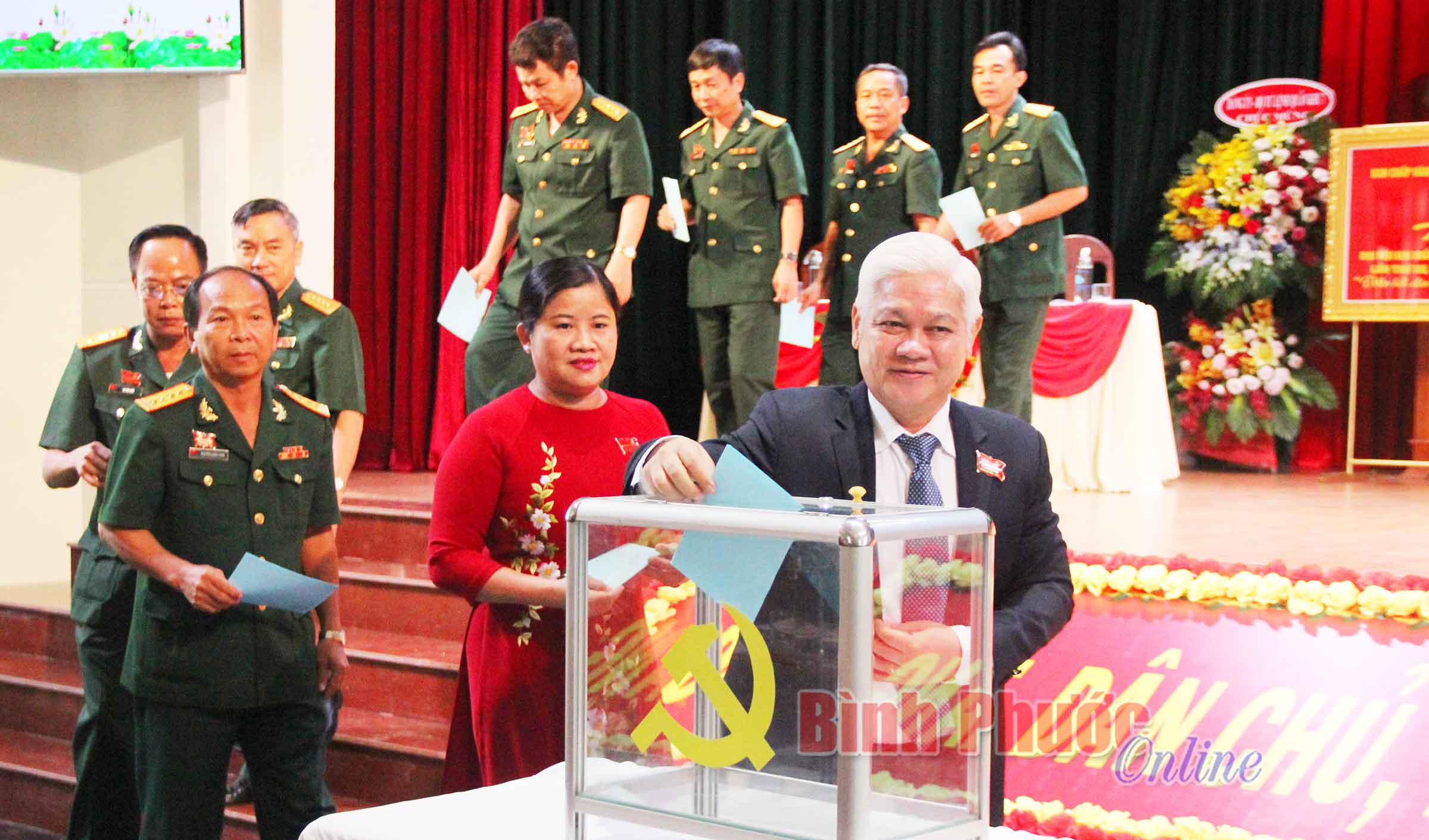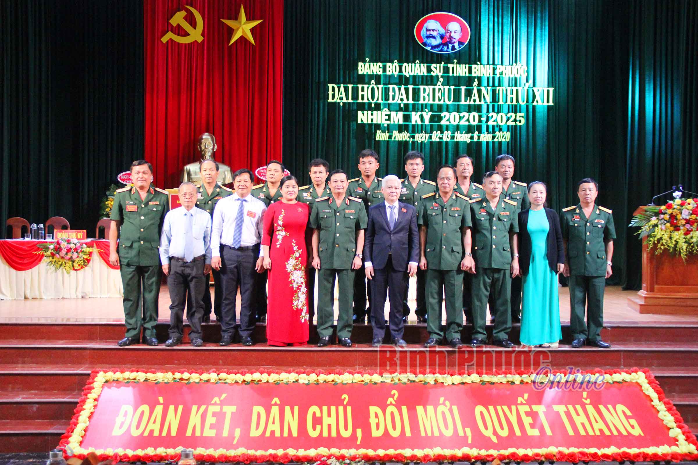Đoàn đại biểu đi dự Đại hội đại biểu Đảng bộ tỉnh lần thứ XI ra mắt đại hội, chụp hình lưu niệm với lãnh đạo tỉnh và lãnh đạo Quân khu 7Đại hội đã bầu đoàn đại biểu đi dự Đại hội Đảng bộ tỉnh lần thứ XI, nhiệm kỳ 2020-2025 gồm 7 đại biểu chính thức và 1 đại biểu dự khuyết.