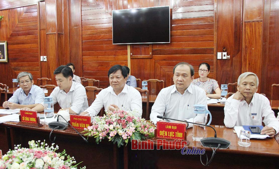 Quang cảnh buổi làm việcBáo cáo tại buổi làm việc, đại diện Tổng công ty Điện lực miền Nam cho biết, công trình cải tạo đường dây 110kV Bình Long 2 - Mỹ Phước dài 76,84km, tổng vốn đầu tư trên 74,2 tỷ đồng, đoạn qua địa bàn Bình Phước dài 52,6km.