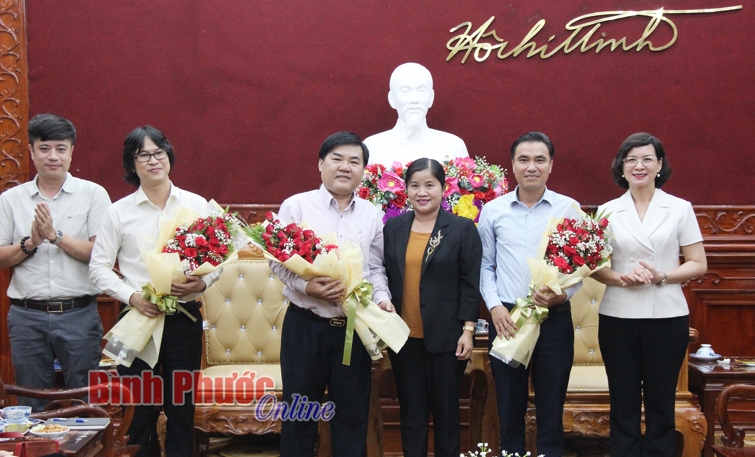 Lãnh đạo tỉnh Bình Phước tặng hoa chúc mừng các đồng chí được lãnh đạo Thông tấn xã Việt Nam điều động, luân chuyển phụ trách cơ quan thường trú Thông tấn xã Việt Nam tại Bình Phước và Bình Dương