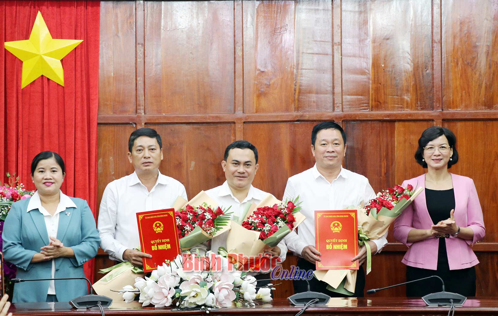 Cán bộ nhận quyết định điều động và bổ nhiệm chức vụĐồng thời, Chủ tịch UBND tỉnh đã phê chuẩn kết quả bầu bổ sung Chủ tịch UBND huyện Lộc Ninh khóa X, nhiệm kỳ 2016-2021 đối với ông Lê Trường Sơn, Ủy viên Ban Thường vụ Tỉnh ủy, Bí thư Huyện ủy Lộc Ninh; và các chức vụ: Phó chủ tịch UBND huyện đối ông Nguyễn Thanh Phi, Ủy viên Ban Thường vụ Huyện ủy; Hồ Quang Khánh, Ủy viên Ban Chấp hành Đảng bộ huyện. Phê chuẩn kết quả bầu bổ sung Chủ tịch UBND huyện Bù Đăng, khóa VI, nhiệm kỳ 2016-2021 đối với ông Trần Thanh Hòa, Phó bí thư Huyện ủy.