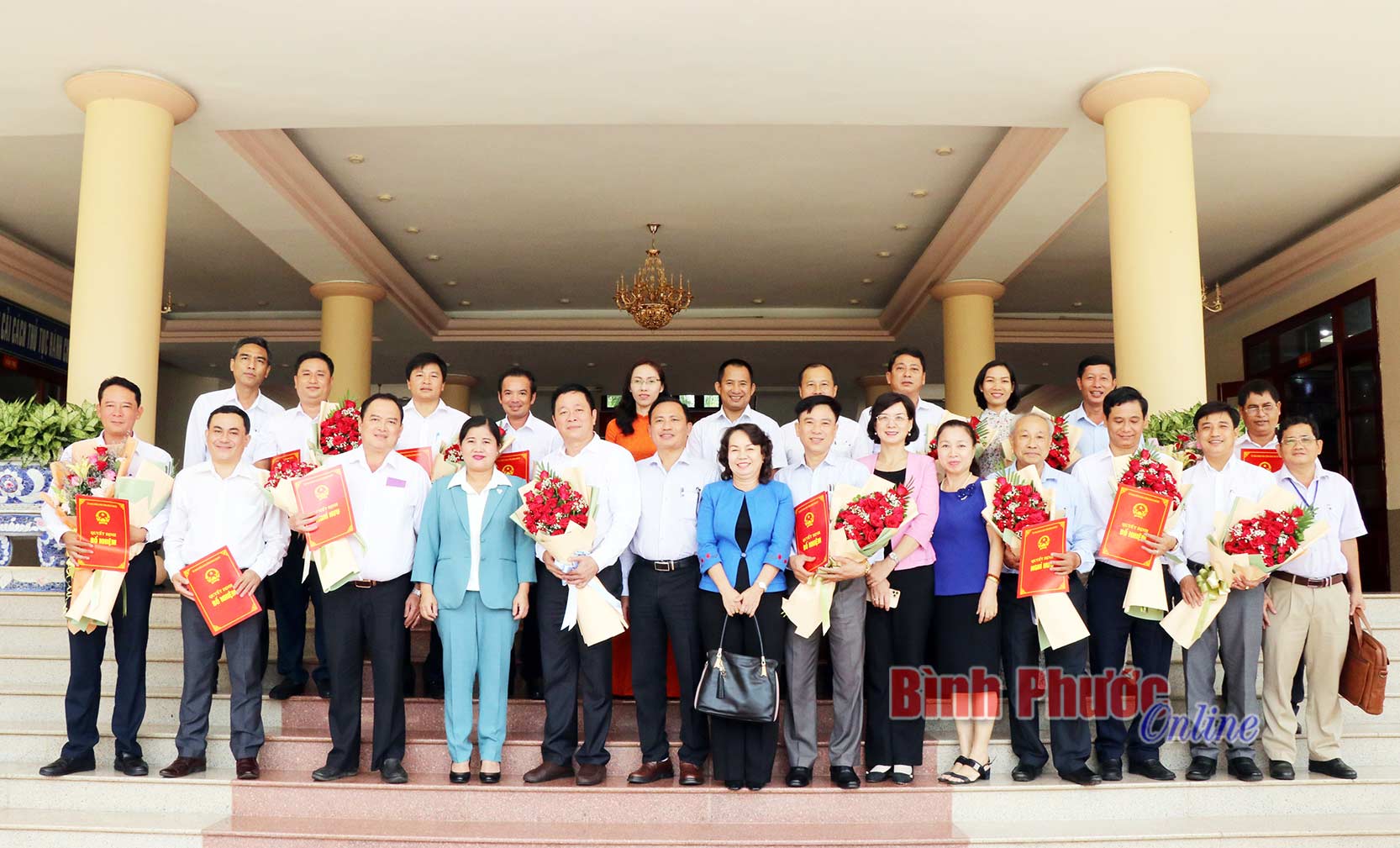 Cán bộ nhận quyết định phê chuẩn kết quả bầu bổ sung Chủ tịch UBND huyệnPhê chuẩn kết quả bầu bổ sung Chủ tịch UBND huyện Chơn Thành, khóa XI, nhiệm kỳ 2016-2021 đối với ông Hà Huy Đạt, Phó chủ tịch Thường trực HĐND huyện; và chức vụ Phó chủ tịch UBND huyện đối với ông Dương Hoài Pha, bà Nguyễn Thị Hải Vân. Phê chuẩn kết quả bầu bổ sung chức vụ Phó chủ tịch UBND huyện Bù Đốp, khóa IV, nhiệm kỳ 2016-2021 đối với ông Nguyễn Minh Phong. Phê chuẩn kết quả bầu bổ sung chức vụ Phó chủ tịch UBND huyện Hớn Quản, khóa XI, nhiệm kỳ 2016-2021 đối với ông Nguyễn Vũ Tiến. Phê chuẩn kết quả bầu bổ sung chức vụ Phó chủ tịch UBND huyện Đồng Phú, khóa XI, nhiệm kỳ 2016-2021 đối với ông Nguyễn Thanh Tùng.
