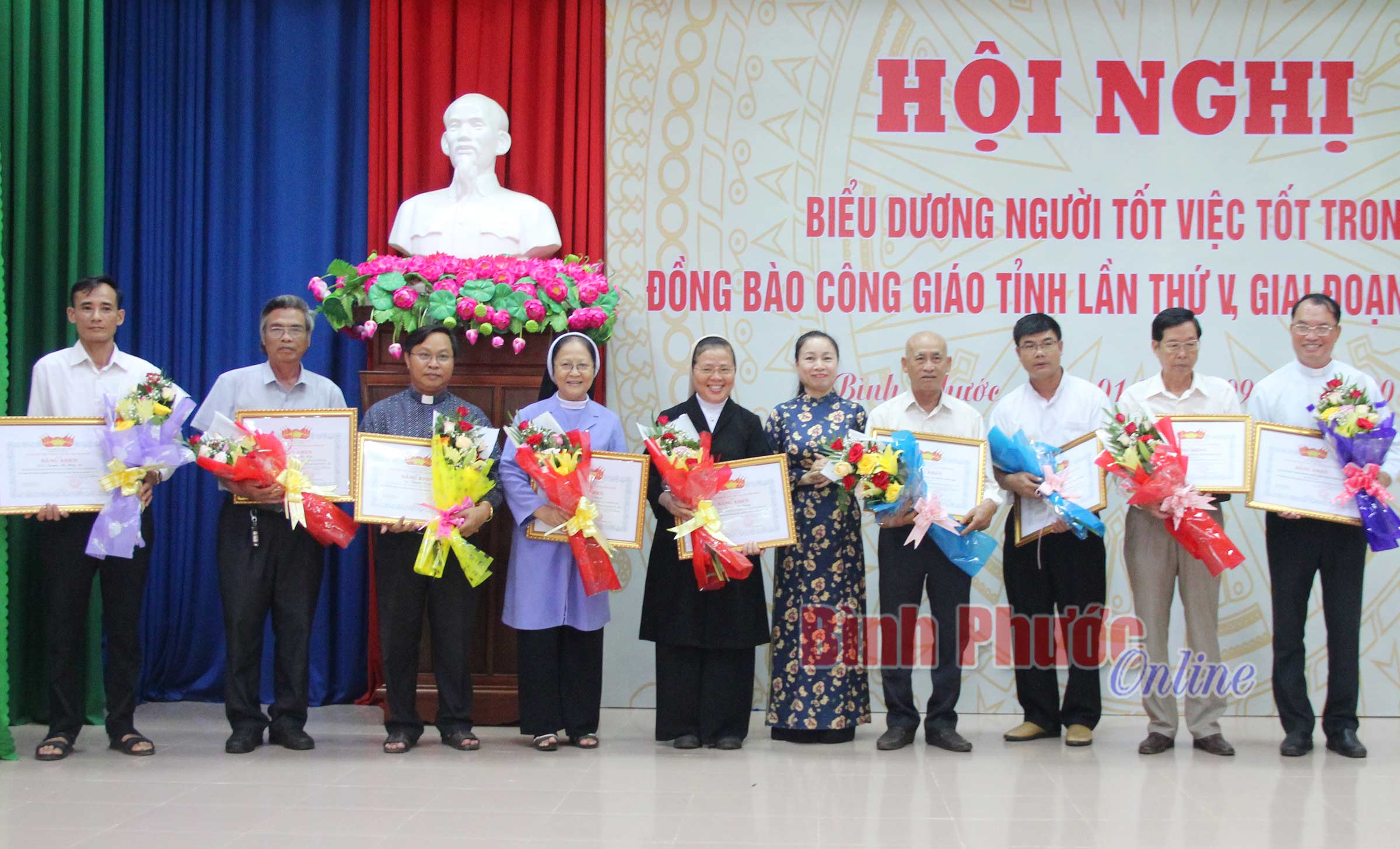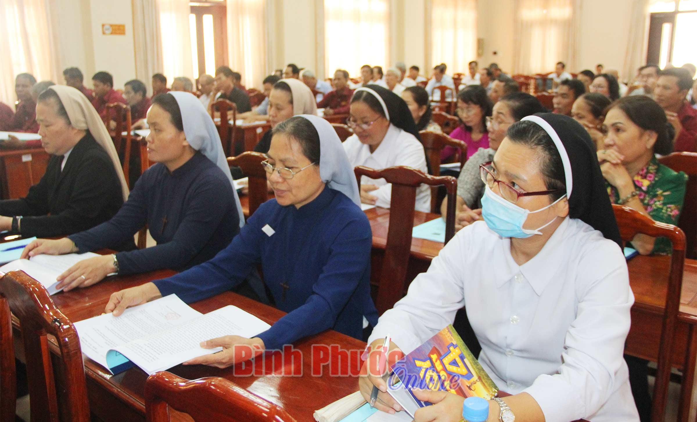 Bình Phước hiện có 3 giáo hạt, 107.499 giáo dân, 69 chức sắc, 563 chức việc, hơn 200 tu sĩ, 102 cơ sở tôn giáo và 10 cộng đoàn dòng tu. Trong 5 năm qua, đồng bào Công giáo trong tỉnh luôn phát huy tinh thần đoàn kết, chấp hành tốt các chủ trương, đường lối của Đảng, chính sách, pháp luật của Nhà nước; tích cực tham gia và thực hiện tốt các phong trào thi đua yêu nước, các cuộc vận động do Mặt trận Tổ quốc Việt Nam phát động. Trong đó, nổi bật là phong trào “Toàn dân đoàn kết xây dựng nông thôn mới, đô thị văn minh, sống tốt đời đẹp đạo” được các giáo xứ, giáo họ, cộng đoàn giáo dân thực hiện có hiệu quả.
