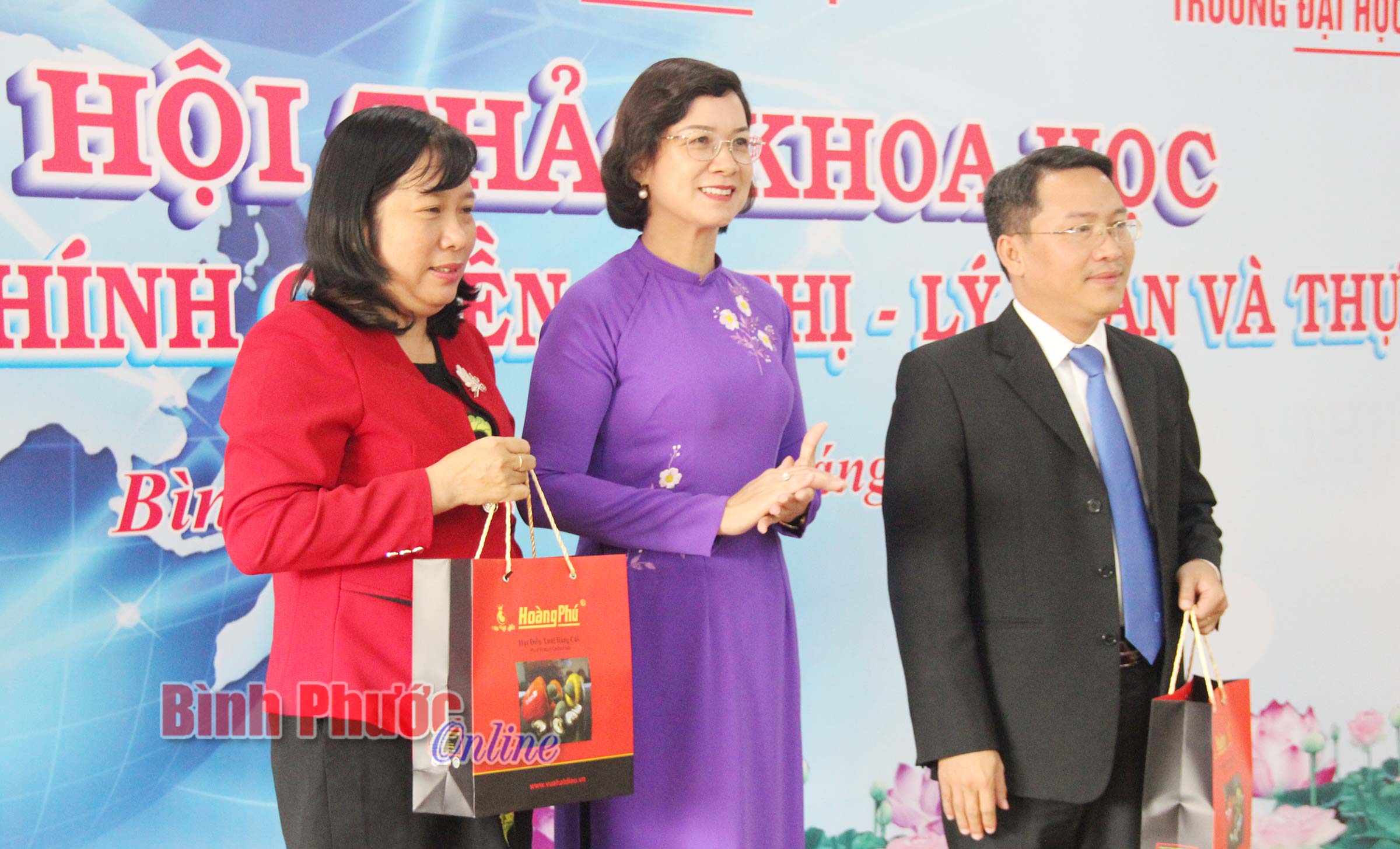 Chủ trì buổi hội thảo gồm có: Ủy viên Ban Thường vụ Tỉnh ủy, Phó chủ tịch UBND tỉnh Trần Tuyết Minh, phụ trách Trường Chính trị tỉnh; Phó giáo sư, Tiến sĩ Nguyễn Tấn Phát, Giám đốc Học viện Cán bộ và Tiến sĩ Lê Chi Lan, Hiệu phó Trường Đại học Sài Gòn.