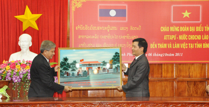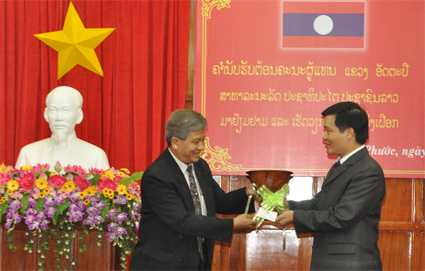 Phó Tỉnh trưởng tỉnh Attapư cũng tặng quà lưu niệm cho tỉnh Bình Phước