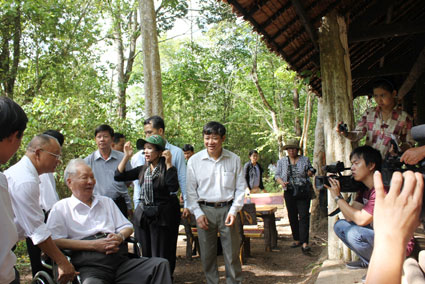 Về thăm căn cứ Quân ủy bộ tư lệnh các lực lượng vũ trang giải phóng miền Nam Việt Nam (gọi tắt là Bộ chỉ huy Miền), Đại tướng đã xúc động khi đến thăm nơi ở cũ của mình (nhà tưởng niệm đồng chí Lê Đức Anh) và hội trường Bộ chỉ huy Miền, nhà lưu niệm… Đại tướng ôn lại những ngày tháng hào hùng, khi Bộ chỉ Miền dời về Tà Thiết (tháng 2-1973), chỉ huy chiến dịch Hồ Chí Minh đại thắng mùa xuân năm 1975.