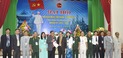 Trong hai ngày 26 và 27-9-2012, Hội Hữu nghị Việt Nam - Campuchia tỉnh Bình Phước đã tổ chức đại hội lần thứ I, nhiệm kỳ 2012-2017. Về dự đại hội trong phiên làm việc chính thức hôm qua (27-9) có ông Vũ Mão, Chủ tịch Trung ương Hội Hữu nghị Việt Nam - Campuchia; ông Nguyễn Tấn Hưng, Ủy viên Ban chấp hành Trung ương Đảng, Bí thư Tỉnh ủy; lãnh đạo các huyện, thị xã, các sở, ngành trong tỉnh và 72 hội viên.