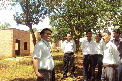 Lãnh đạo tỉnh và huyện kiểm tra tình trạng xây dựng nhà trái phép tại khu bảo tồn văn hóa dân tộc Xêtiêng, xã Bình Minh - Ảnh: Minh Luận