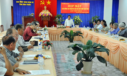 Tại buổi họp mặt, Bí thư tỉnh ủy Nguyễn Tấn Hưng đã thông tin về kết quả kiểm điểm tự phê bình và phê bình tập thể và cá nhân trong Ban thường vụ tỉnh ủy theo Nghị quyết TW4 khóa XI; Phó bí thư thường trực tỉnh ủy Võ Đình Tuyến đã báo cáo tiếp thu, giải trình ý kiến đóng góp của các đồng chí nguyên là ủy viên ban thường vụ tỉnh ủy, tỉnh ủy viên, thủ trưởng các cơ quan, ban, ngành, đoàn thể đã nghỉ hưu; Phó chủ tịch UBND tỉnh Phạm Văn Tòng báo cáo tóm tắt tình hình kinh tế - xã hội năm 2012 và những chỉ tiêu phát triển kinh tế - xã hội của tỉnh năm 2013.