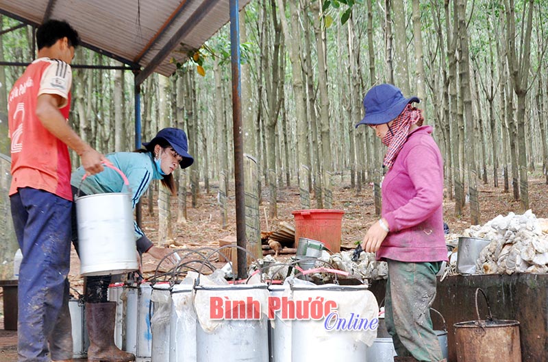 Thu hoạch mủ từ vườn cây liên doanh tại xã Đắk Ơ của Công ty Phú Thịnh
