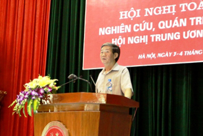 Đồng chí Đinh Thế Huynh, Ủy viên Bộ Chính trị, Trưởng Ban Tuyên giáo Trung ương phát biểu khai mạc Hội nghị toàn quốc nghiên cứu, quán triệt Nghị quyết Hội nghị TƯ lần thứ 7 (khóa XI), ngày 3-7. |