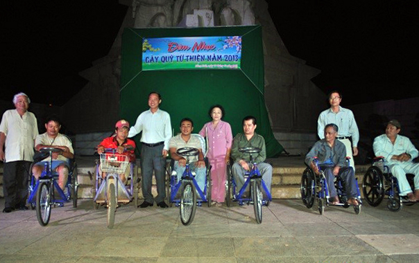 Tối nay 28 - 12, tại tượng đài chiến thắng Đồng Xoài, Hội bảo trợ người tàn tật - trẻ mồ côi - bệnh nhân nghèo thị xã Đồng Xoài đã tổ chức đêm ca múa nhạc từ thiện nhằm kêu gọi hảo tâm gây quỹ giúp đỡ người tàn tận, trẻ mồ côi và bệnh nhân nghèo có hoàn cảnh khó khăn.
