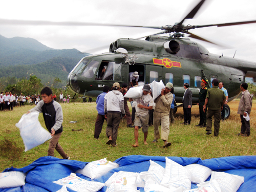 Máy bay của Sư đoàn Không quân 372 (Quân chủng Phòng không- Không quân) vận chuyển hàng cứu trợ đến đồng bào vùng lũ huyện Vân Canh, tỉnh Bình Định