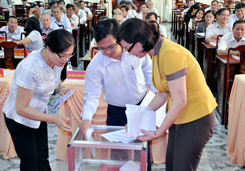Tổ kiểm phiếu kiểm tra phiếu sau khi bầu bổ sung ủy viên Ban thường vụ và ủy viên Ban chấp hành đảng bộ tỉnh