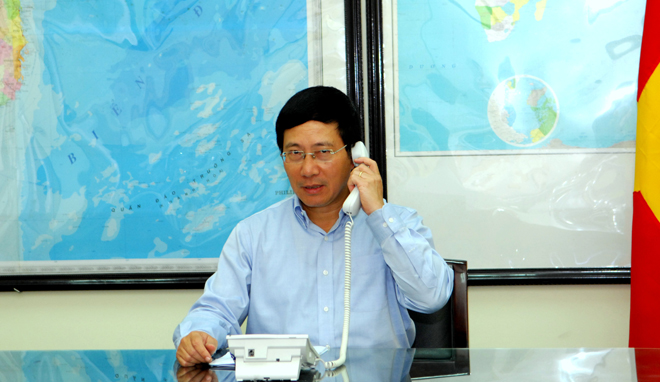 Bộ trưởng Bộ Ngoại giao Phạm Bình Minh trong cuộc điện đàm với Ủy viên Quốc vụ Trung Quốc Dương Khiết Trì