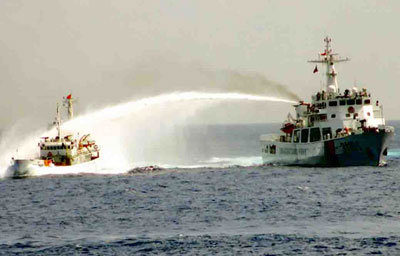 ![]() Hình ảnh tàu Trung Quốc dùng vòi rồng tấn công tàu bảo vệ bờ biển của Việt Nam được nhiều hãng truyền thông quốc tế khai thác |