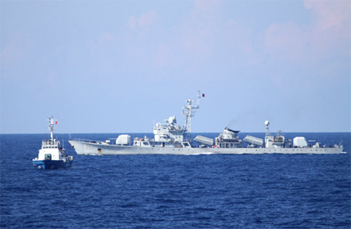 Thực tế, từ ngày 9-6, Cục Kiểm ngư Việt Nam cho hay số lượng tàu chiến Trung Quốc vây quanh giàn khoan 981 đã tăng lên 6 chiếc, gồm hai tàu quét mìn, hai tàu hộ vệ tên lửa và hai tàu tên lửa tấn công nhanh.