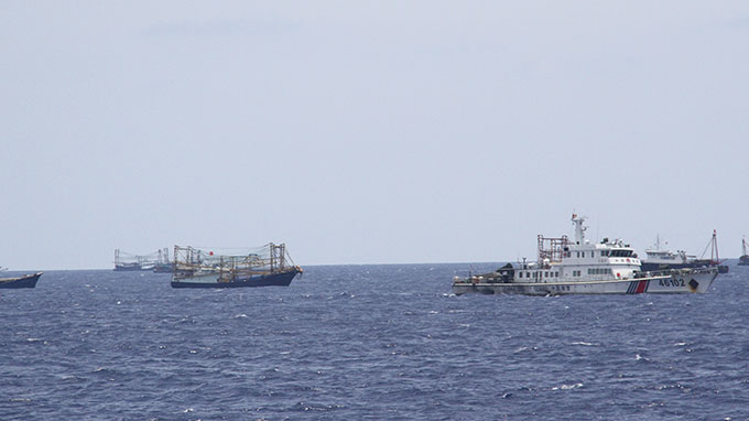 Tàu cá của Trung Quốc đi thành từng đàn dưới sự yểm trợ của tàu quân sự và tàu hải giám để sẵn sàng đâm va vào tàu Việt Nam